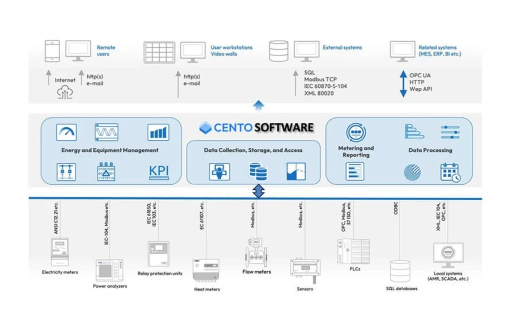 CENTO is an enterprise-level Industrial IoT (IIoT) platform that unifies monitoring, control, metering, reporting, SCADA functionalities, and data exchange into one powerful ecosystem. It enables full visibility and centralized management of technological and energy processes across all industrial facilities.