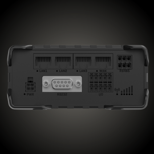 The RUT956 is an industrial LTE Cat 4 (Long-Term Evolution Category 4) cellular router with dual-SIM, Wi-Fi 2.4 GHz (802.11 b/g/n) and 4× RJ45 10/100 Mbps Ethernet (3× LAN + 1× WAN). It adds RS-232 (DB9) and RS-485 for serial integration, GNSS for positioning/time, and digital/analogue I/O for alarms and control. Running RutOS, it supports VPN, firewall, VLAN and remote fleet management via RMS (Remote Management System).